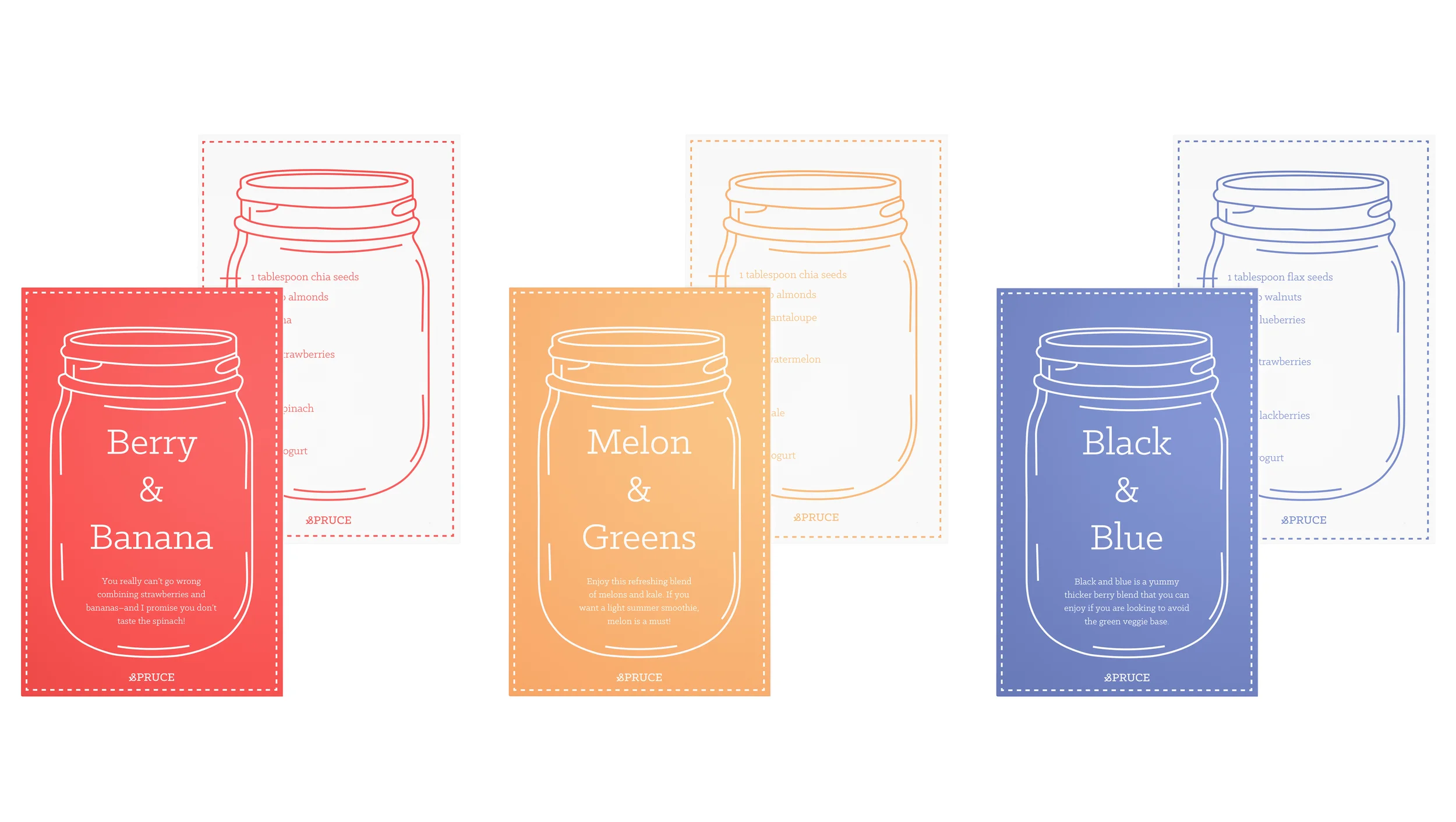 Spruce is a fictional smoothie bar focused on living well through what we put in our bodies and how we treat others. The atmosphere is positive and inclusive, with interactive elements and a chance to pay it forward at the register. Our system highlights the organic and seasonal ingredients we provide at the bar. Come on in, grab a jar, choose your fruit and we’ll blend it for you.